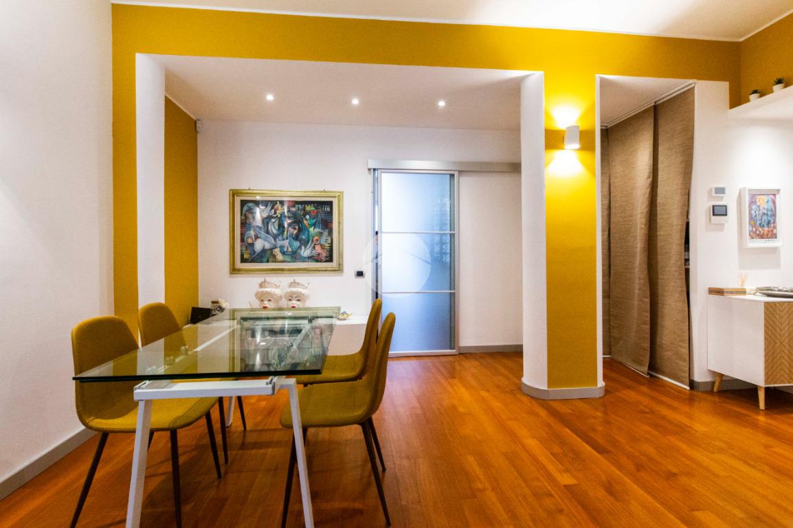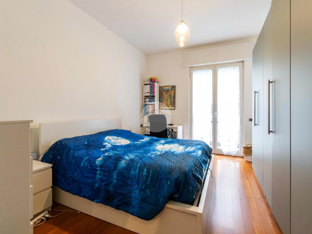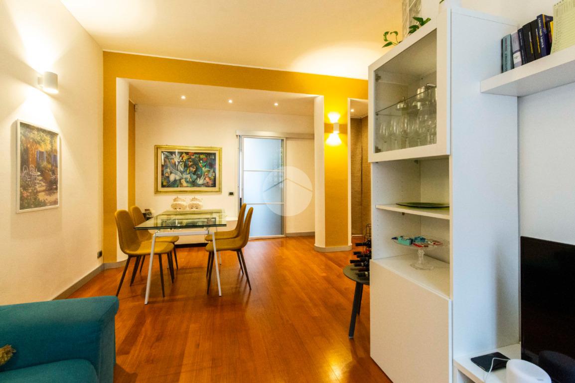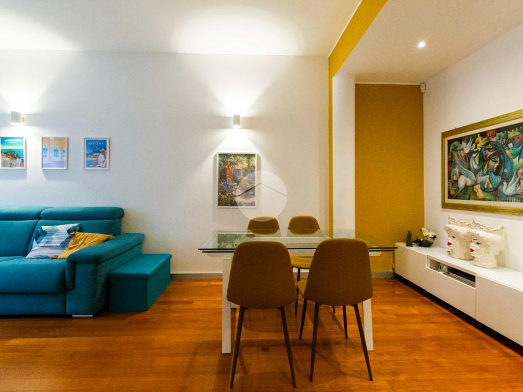 proseguendo sempre dal disimpegno iniziale, accediamo alla camera matrimoniale con porta finestra che ci permette di accedere al secondo balcone della casa con affaccio su Via Poliziano, a seguire accediamo alla zona Living con medesimo affaccio della cucina.