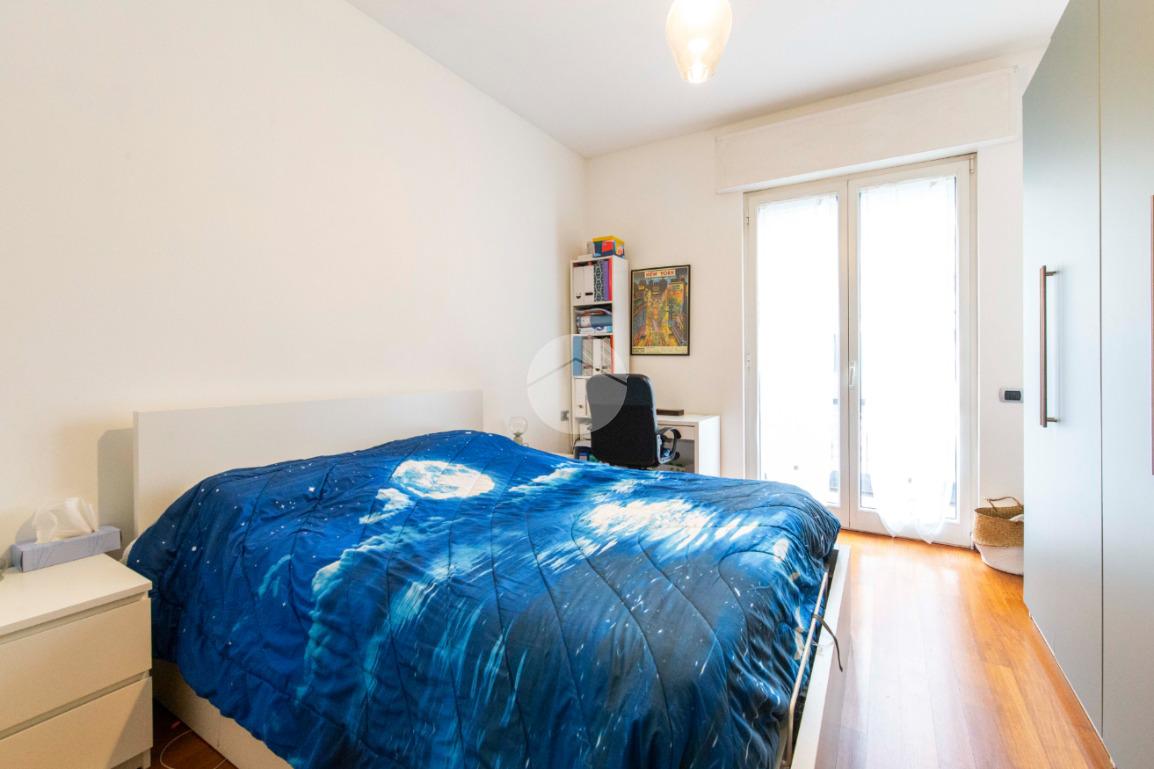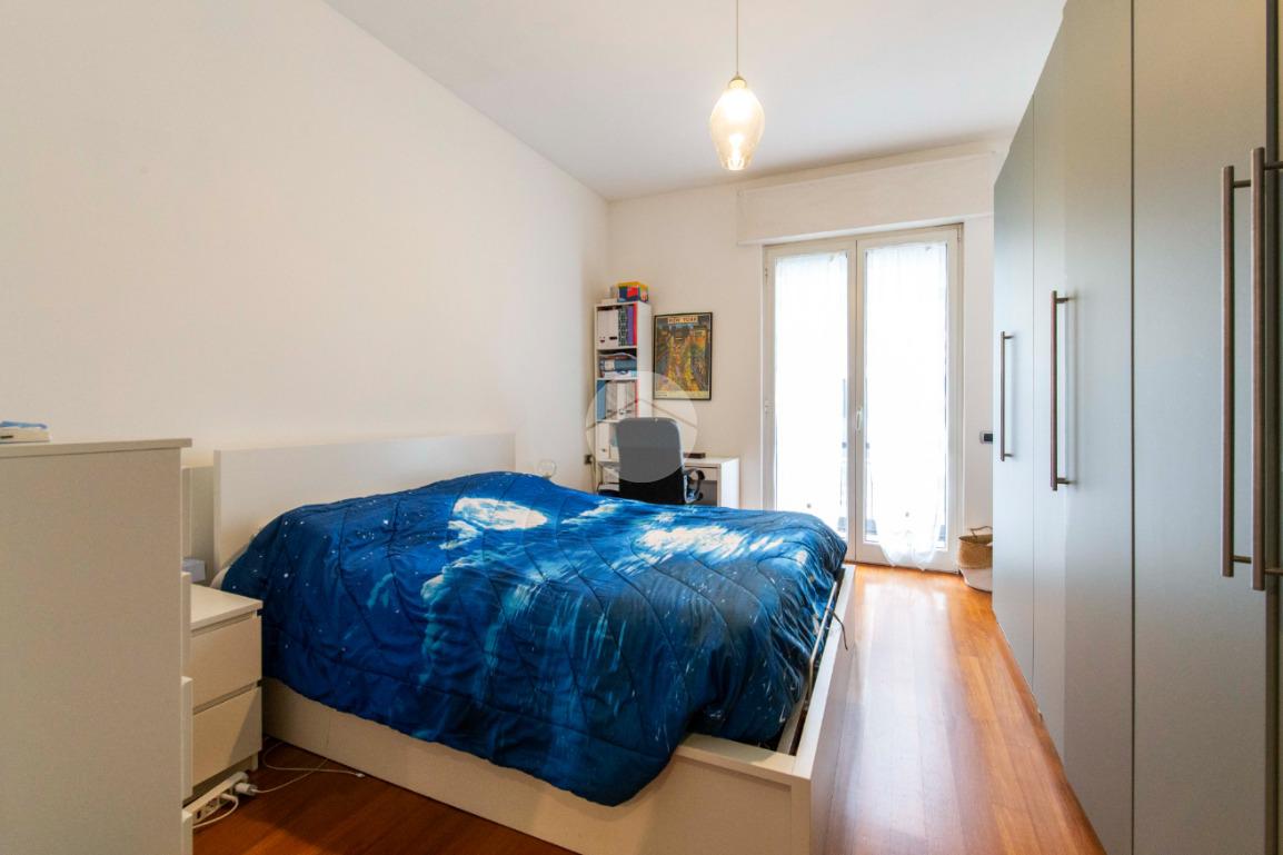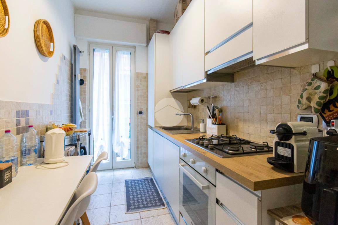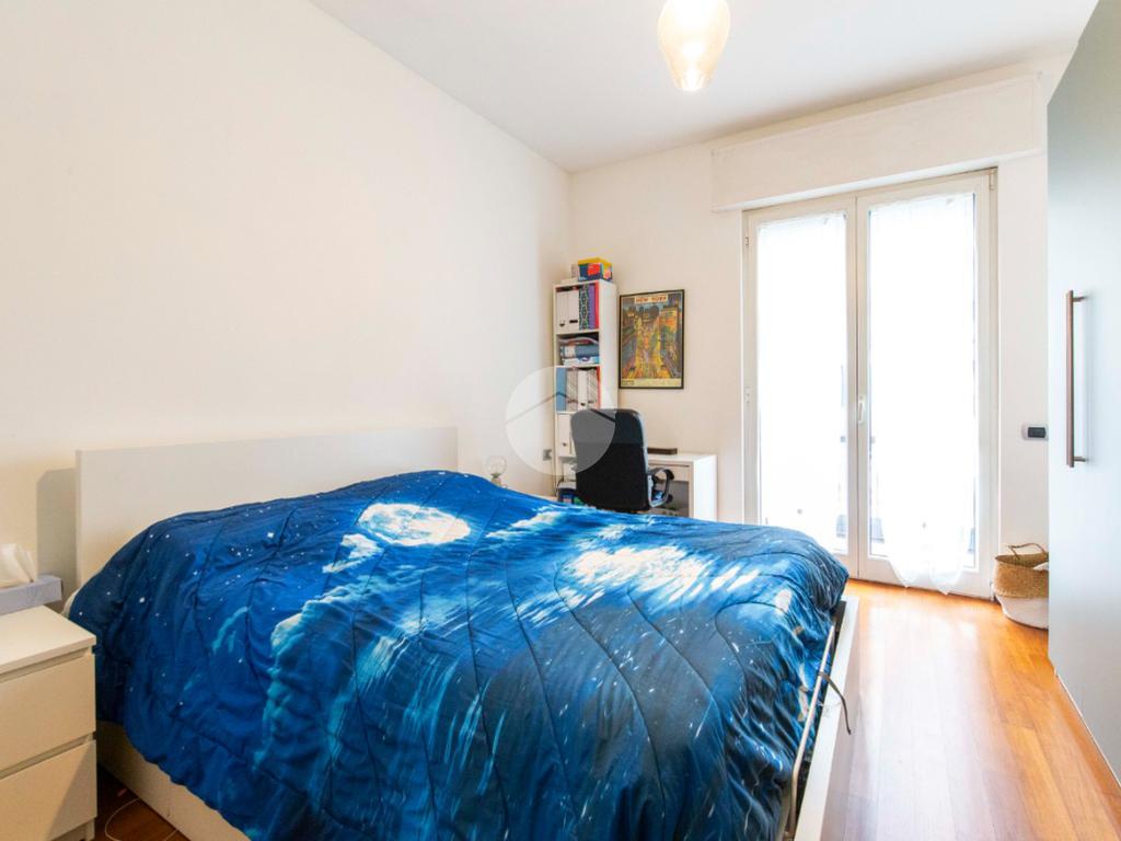 proseguendo sempre dal disimpegno iniziale, accediamo alla camera matrimoniale con porta finestra che ci permette di accedere al secondo balcone della casa con affaccio su Via Poliziano, a seguire accediamo alla zona Living con medesimo affaccio della cucina.