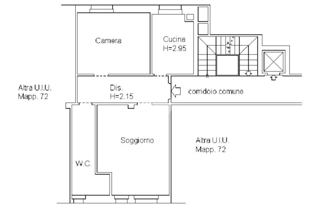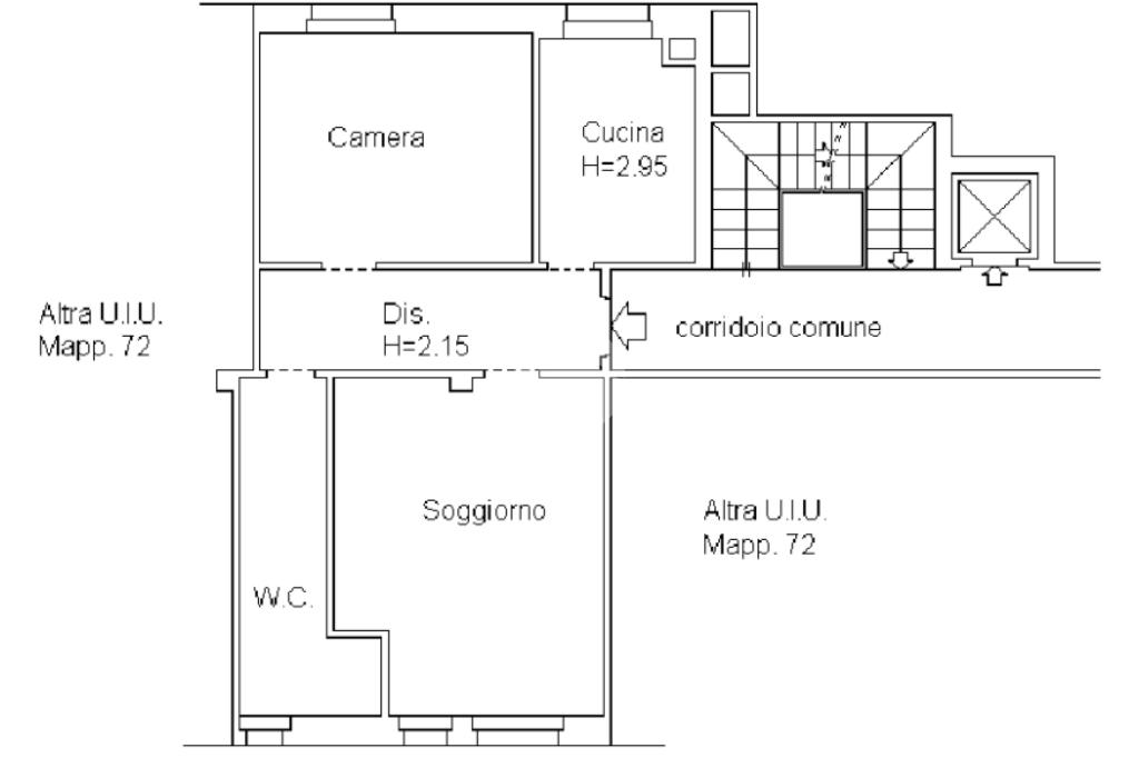 L'appartamento risulta essere così composto: Ingresso in disimpegno che permette l'accesso ai vari ambienti della casa, dove troviamo in primis, subito sulla destra la cucina abitabile con piacevole affaccio sulla Corte Interna.