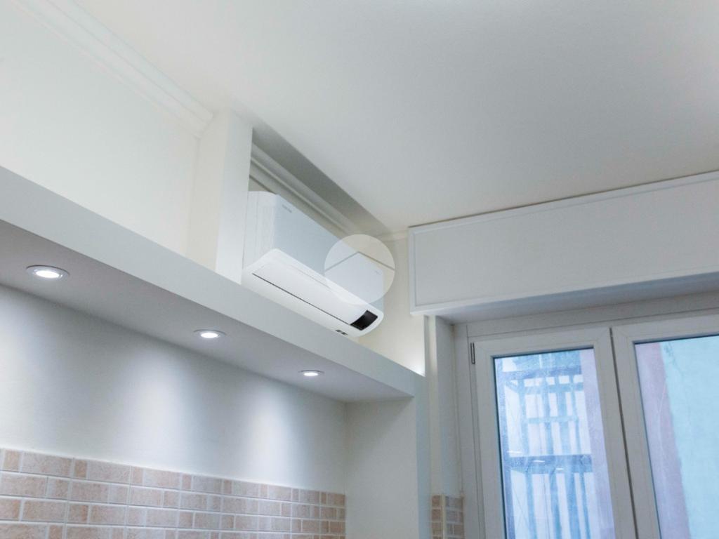 L'appartamento si presenta IN OTTIMO STATO, con pavimentazione in gres porcellanato in tutti gli ambienti, Inoltre infissi in doppio vetro PVC Insonorizzati, split presente in camera matrimoniale, zona living, cucina ed infine Porta Blindata.